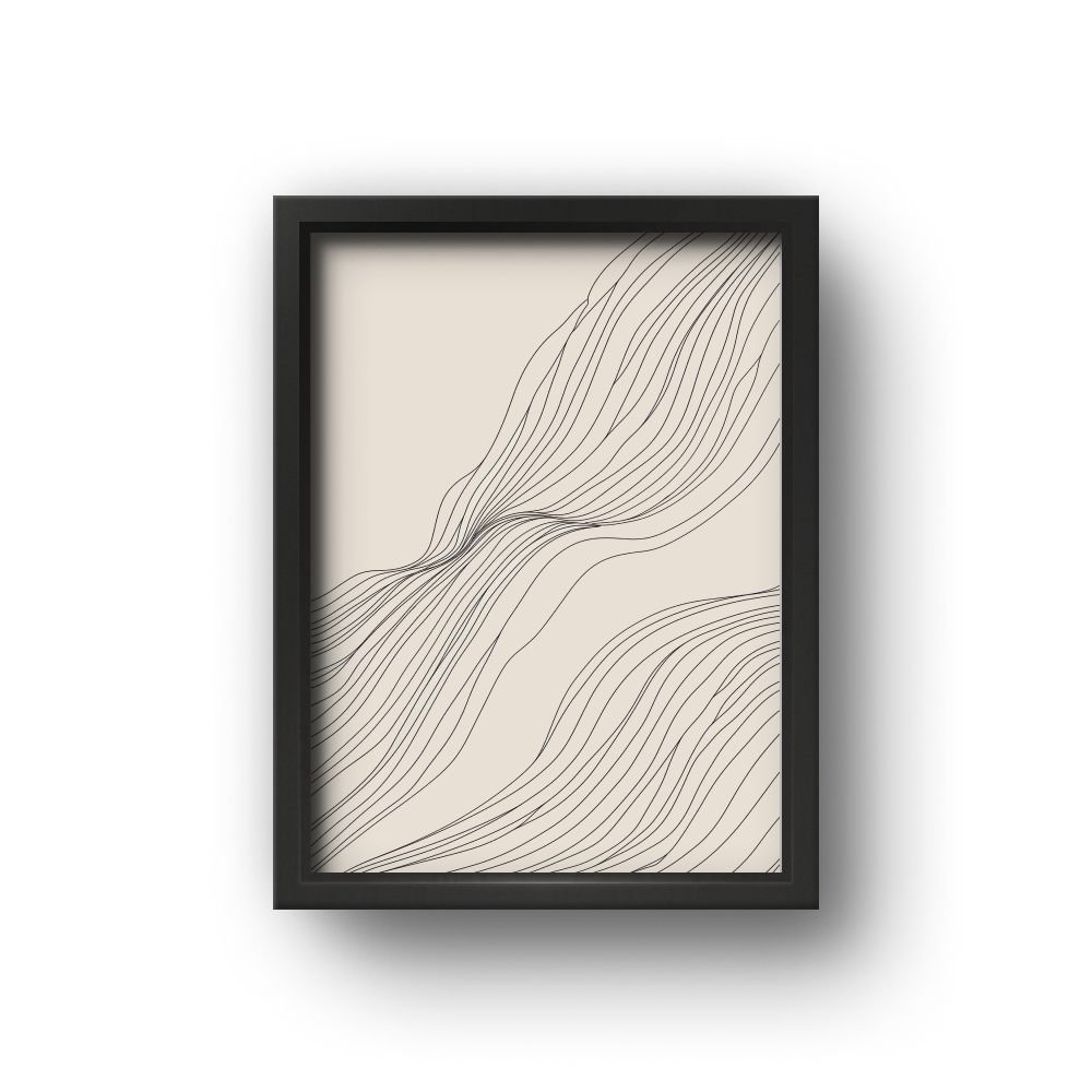 Transforme a atmosfera do seu ambiente com a sofisticação do minimalismo. Este quadro apresenta um design fluido de linhas orgânicas em preto sobre um fundo suave no tom areia, criando um contraste elegante que transmite calma e modernidade.