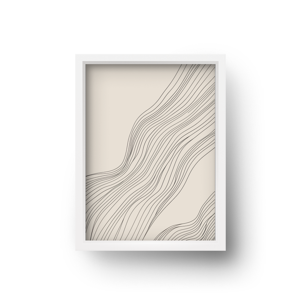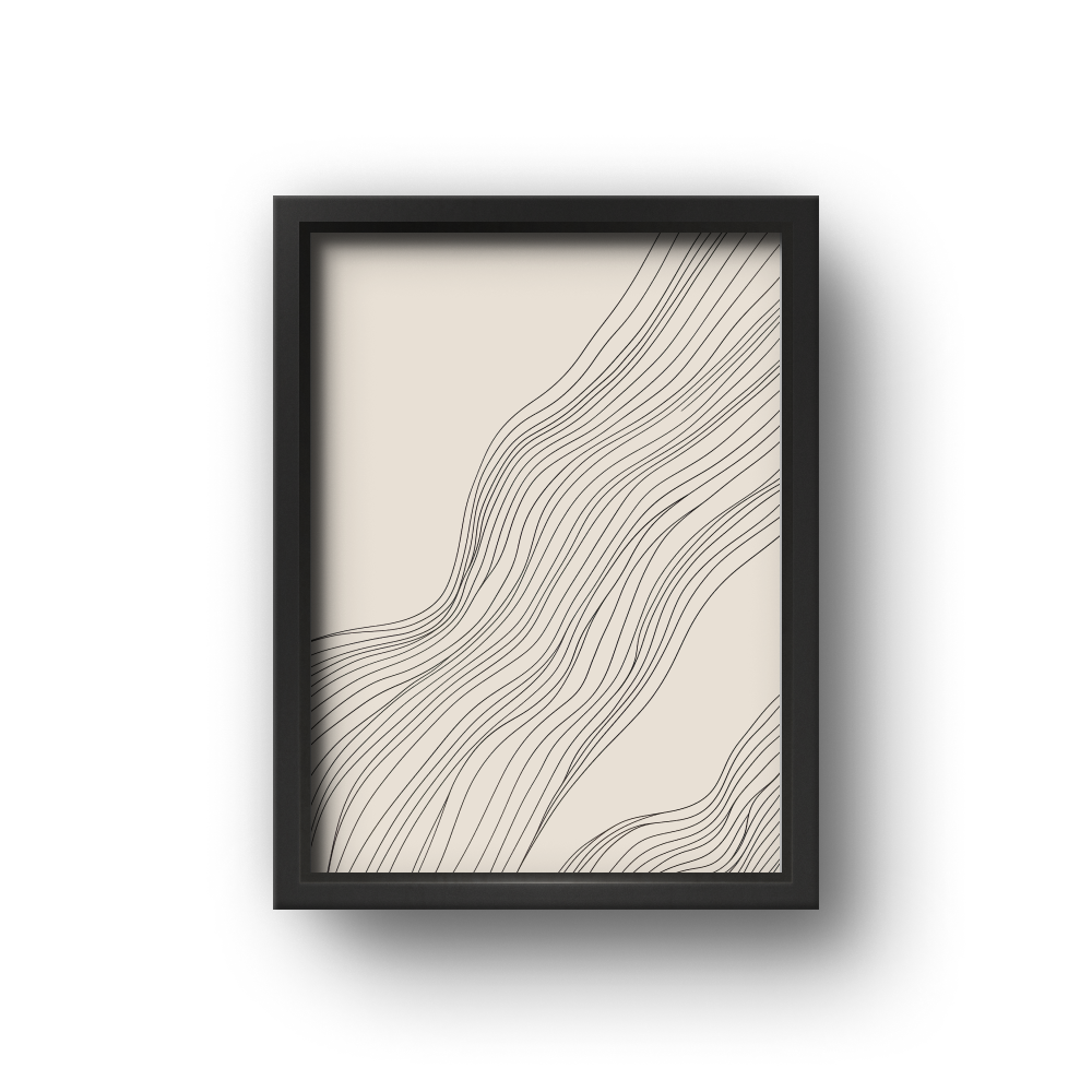 Transforme a atmosfera do seu ambiente com a sofisticação do minimalismo. Este quadro apresenta um design fluido de linhas orgânicas em preto sobre um fundo suave no tom areia, criando um contraste elegante que transmite calma e modernidade.