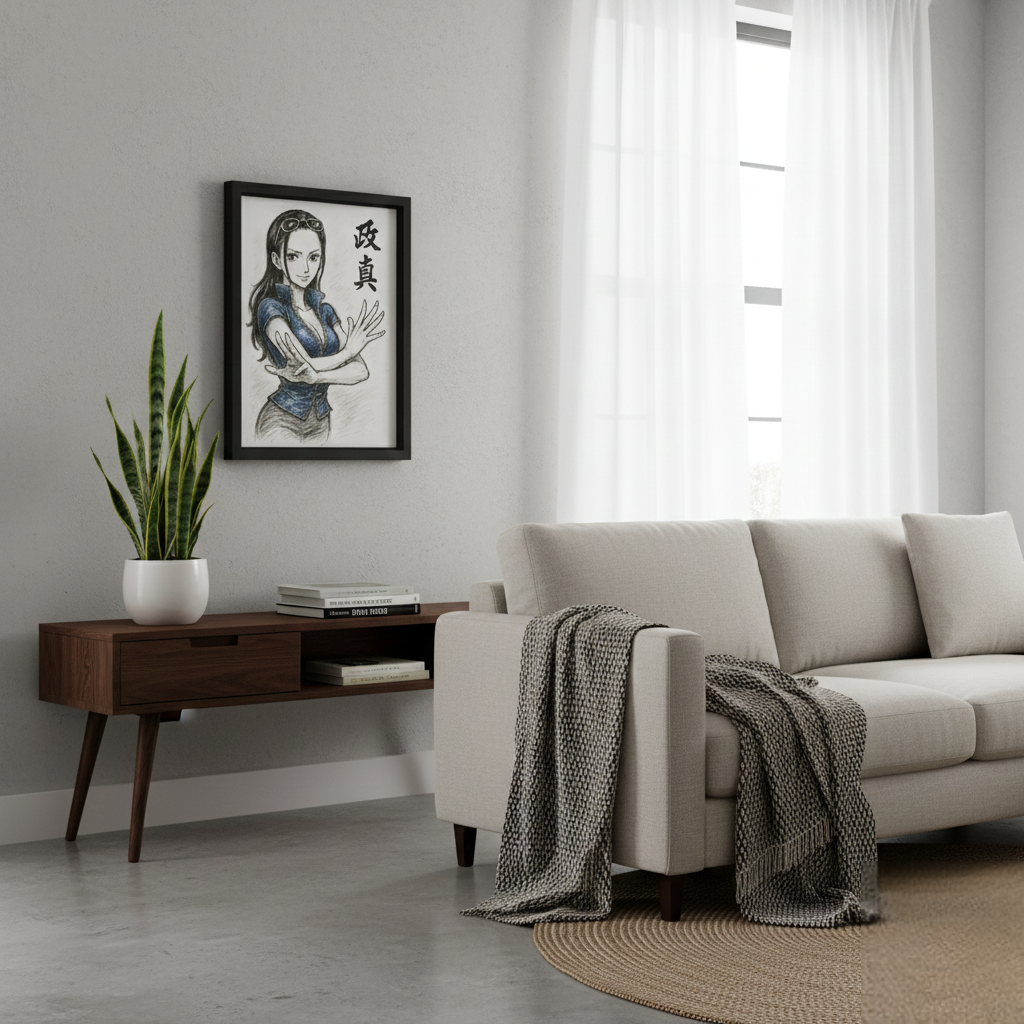 Leve a essência da aventura e da liberdade para o seu ambiente com este quadro decorativo de Nico Robin, inspirado no universo de One Piece.